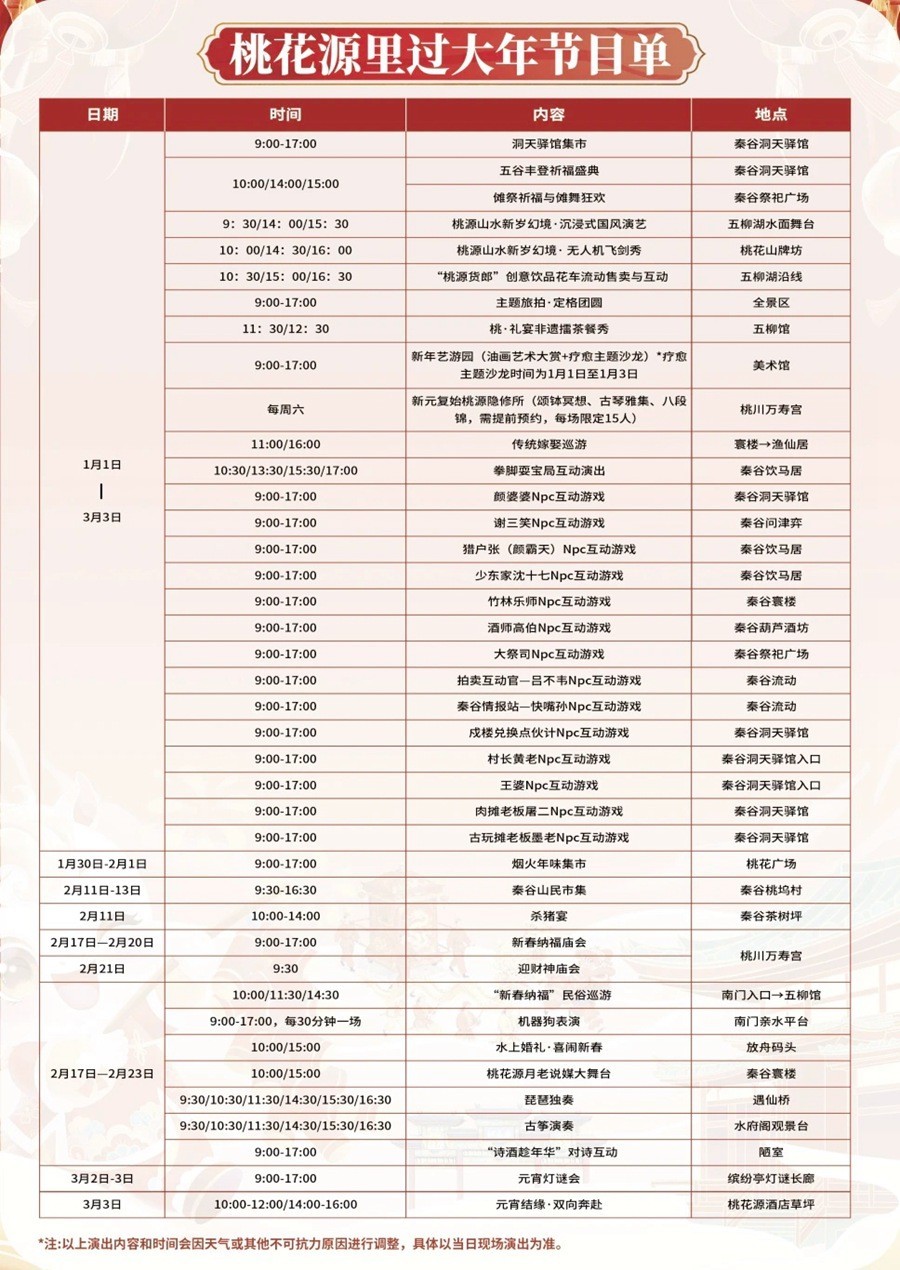 为了方便游客规划行程,以下是2026年春节期间(部分时段)的详细活动安排表: