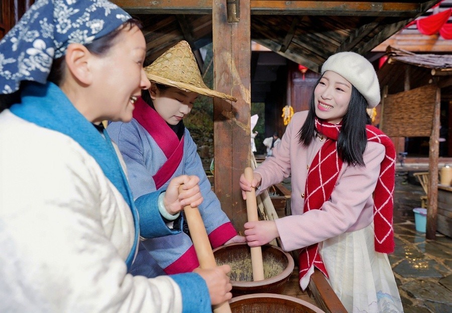 秦谷山民大年市集(腊月二十四至二十六):还原古代集市风貌,体验打糍粑、切冻米糖、晒鱼干等传统年俗。