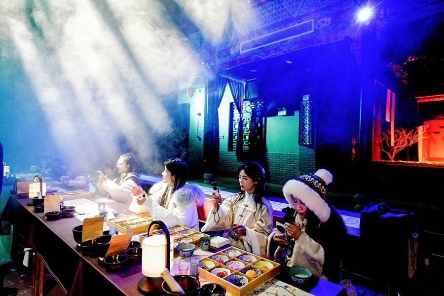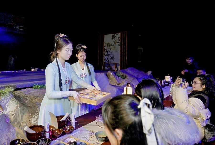 游客不仅能沉浸式体验秦谷山民市集、非遗擂茶餐秀、水上婚礼等特色民俗,还能参与无人机飞剑秀、山水幻境演艺等现代光影盛宴。