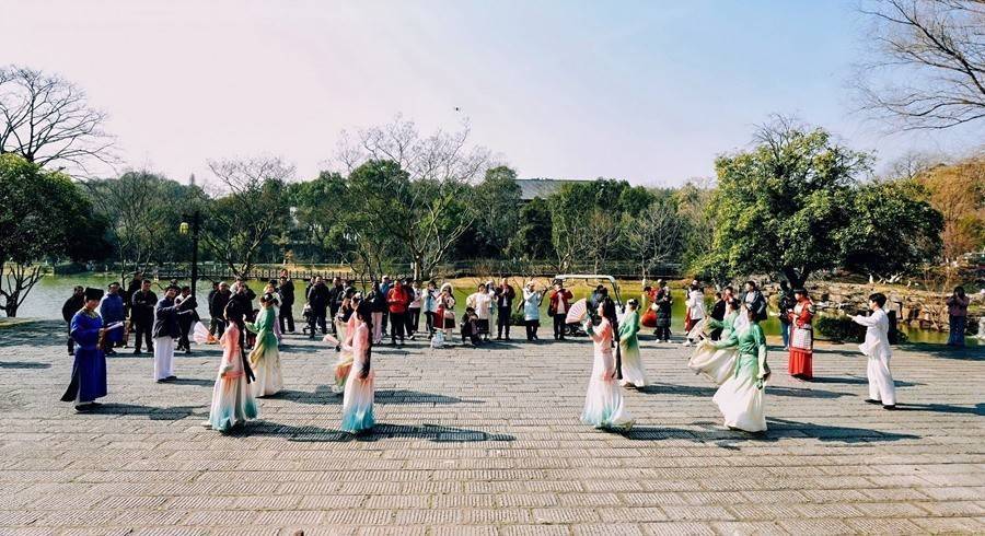 拍照打卡:景区内设有多个古风场景(如寰楼、五柳湖),建议穿着汉服或传统服饰,更容易拍出氛围感大片。